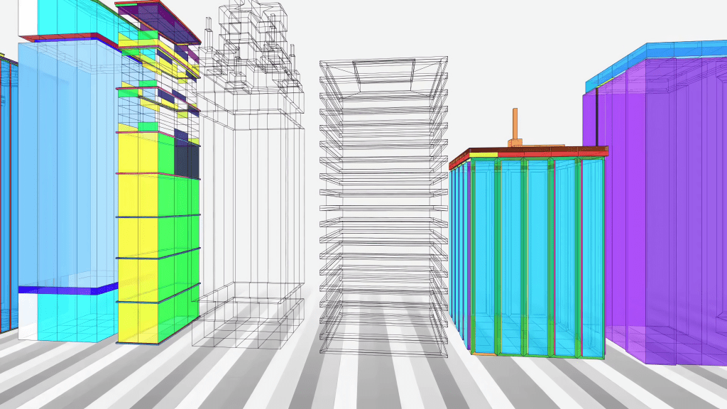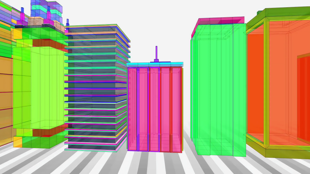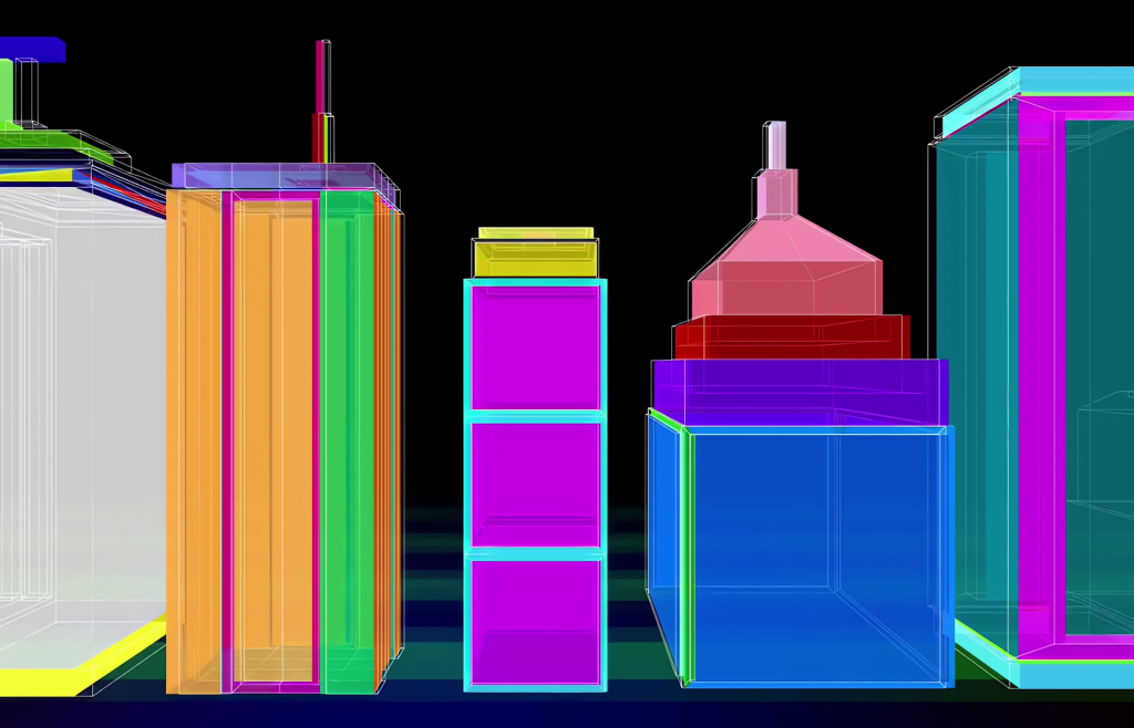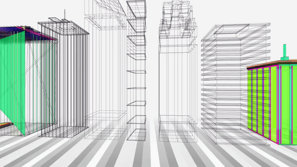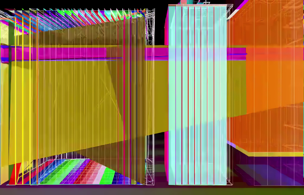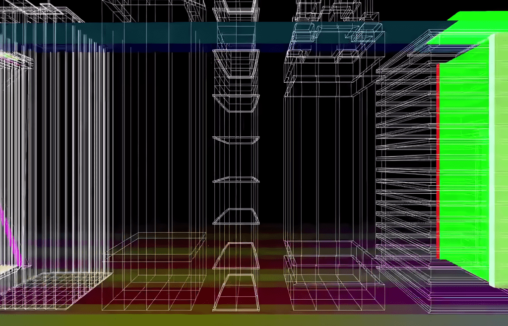 acidBuildings reimagines urban structures as low-poly 3D objects, transforming them into pulsating cybernetic organisms. Each construction comes to life in a synthetic, immersive environment where sound and visuals merge into a unique sensory experience—as if architecture could breathe, vibrate, and evolve before the viewer. These are no longer static forms, but architectural cyborgs, inhabiting the threshold between the digital and the organic.