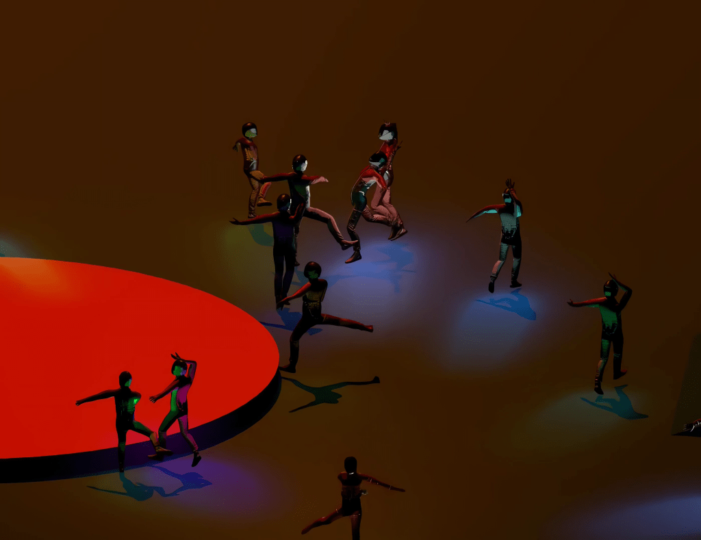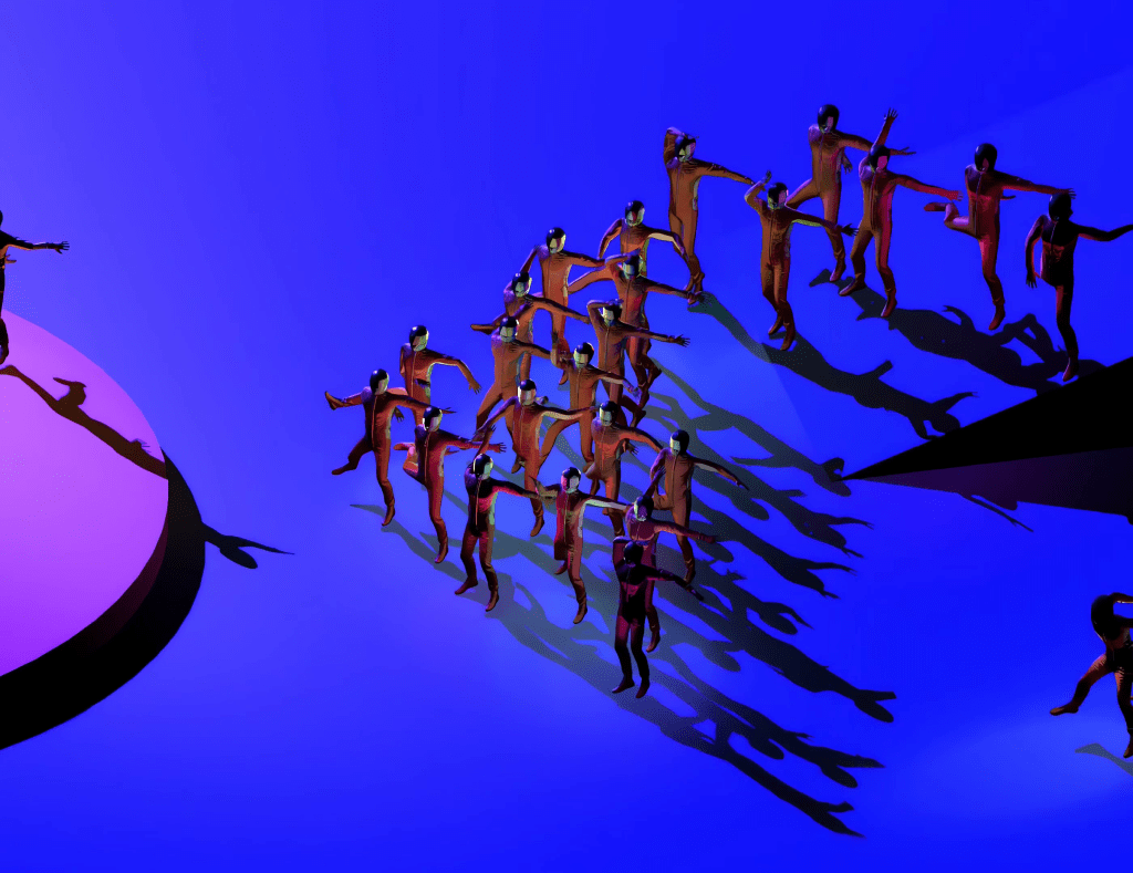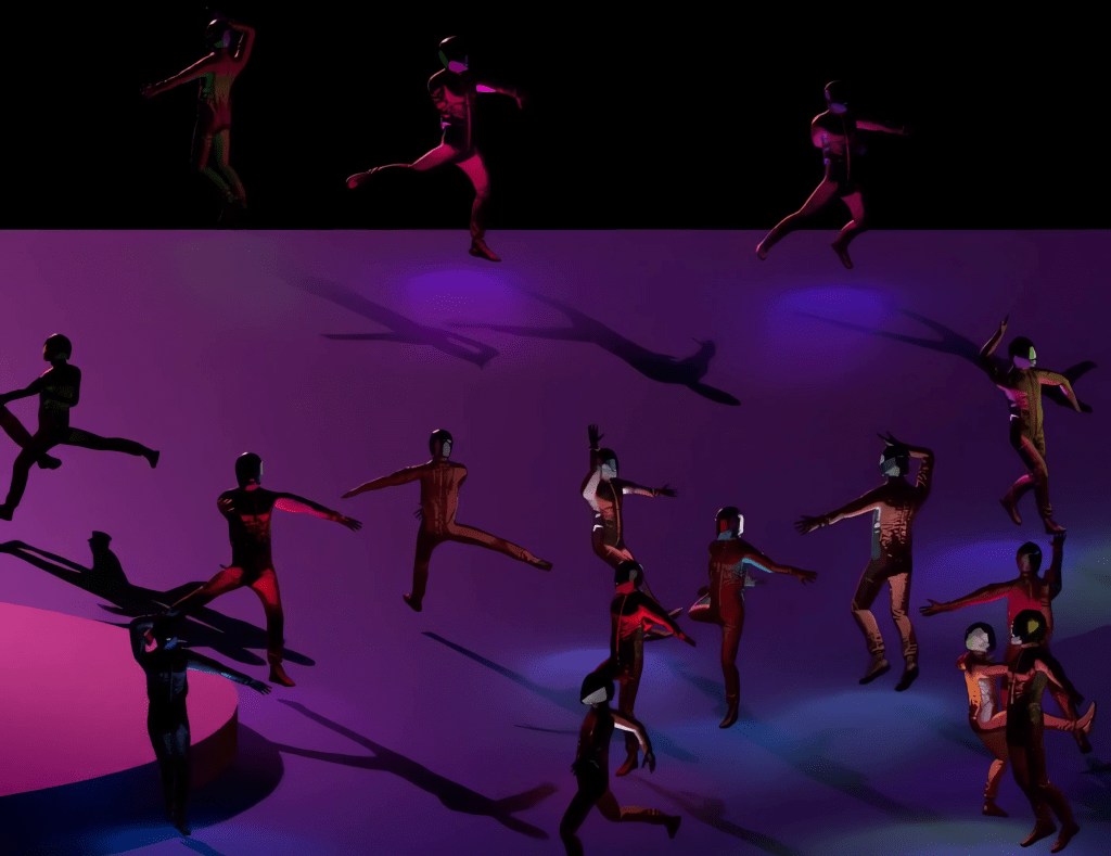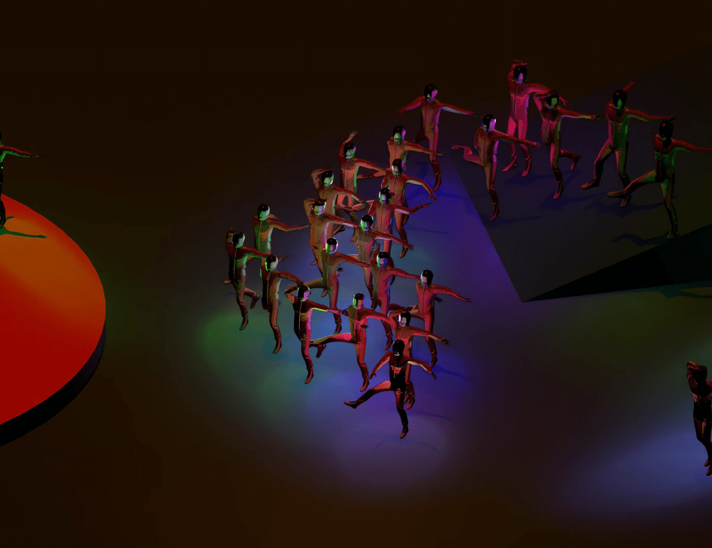 The project emerged from the question: How can I create a dance performance with many game dancers, and how can I control them? Imagine if it were possible to play The Rite of Spring.